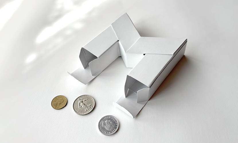 紙箱としては極めて珍しい、立体的でインパクトのあるアルファベット「M」の形状。製品を保護するパッケージとしての役割はもちろん、そのユニークなデザインから、使用後もインテリアとして飾っておきたくなる魅力を備える、デザインと実用性を両立したパッケージです。組み立てには多少の手間がかかりますが、それに見合うだけの特異な形状と、紙の新たな可能性を感じさせるプロダクトです。
